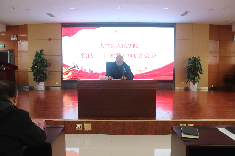 活动就党的二十大会议精神做了宣讲,会议要求全体法官干警务必要将学习宣传贯彻党的二十大精神作为当前和今后一个时期的重要政治任务来完成,牢固树立法治思维,树立远大理想,认真学习、遵守法律法规,履行法定职责,自觉做法治信仰的崇尚者、法律权威的捍卫者、法治精神的弘扬者。要深刻把握党的二十大报告中对于法院工作的新要求、新任务,聚焦审判执行,努力提升工作质效和服务水平,为全面依法治国,推进法治建设提供坚强有力的司法保障。