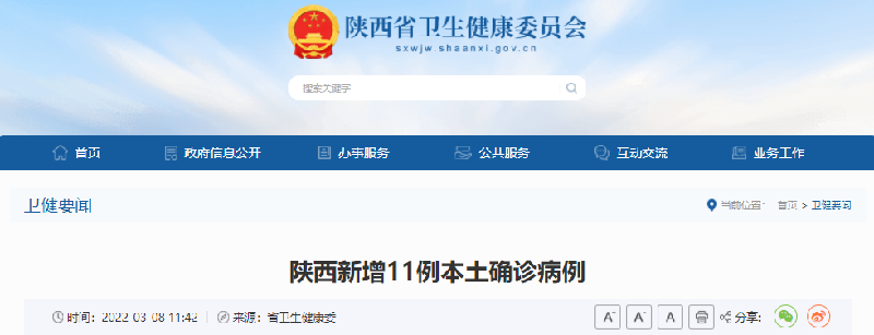 3月7日8时-3月8日8时,新增报告本土确诊病例11例(西安9例、宝鸡1例、汉中1例)。自3月5日以来,本轮疫情全省累计报告本土确诊病例17例(西安15例、宝鸡1例、汉中1例),目前在院17例。