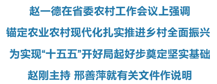 赵一德指出,习近平总书记关于做好“三农”工作的重要指示着眼全局大局,深刻阐明了做好“三农”工作的极端重要性,指明了主攻方向和战略重点,具有很强的思想引领性和现实针对性,为我们做好今年“三农”工作提供了行动指南。全省上下要切实把思想和行动统一到习近平总书记重要指示精神和党中央决策部署上来,始终把“三农”工作牢牢抓住、紧紧抓好,努力把农业建成现代化大产业、使农村基本具备现代生活条件、让农民生活更加富裕美好。