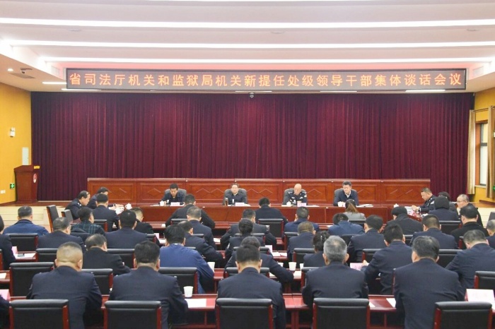 厅党组成员、省监狱管理局党委书记、局长蒋展宏,省监狱管理局有关负责同志,驻厅纪检监察组各室,厅机关和监狱局机关相关处(室、中心)负责同志,新任处级领导干部参加会议。