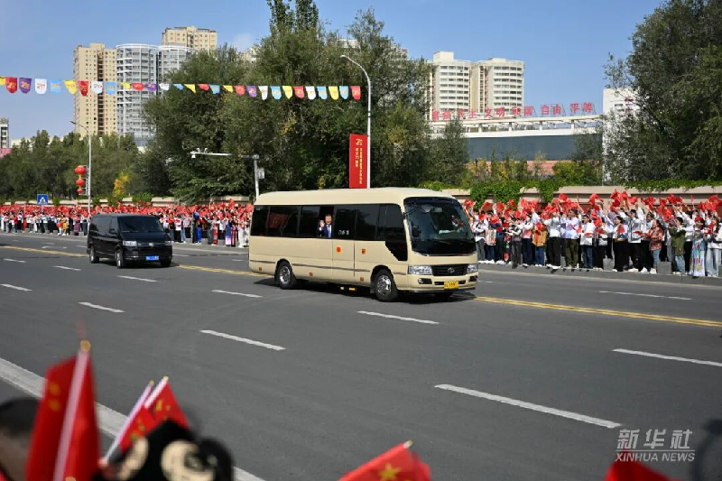 中共中央总书记、国家主席、中央军委主席习近平率中央代表团23日下午乘专机抵达乌鲁木齐,出席新疆维吾尔自治区成立70周年庆祝活动。习近平等在机场和乌鲁木齐市区受到新疆各族群众的热烈欢迎。中共中央政治局常委、全国政协主席、中央代表团团长王沪宁,中共中央政治局常委、中央办公厅主任蔡奇等同机抵达。