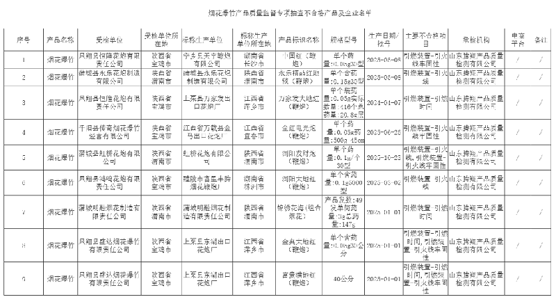 2025年烟花爆竹产品质量监督专项抽查不合格产品及企业名单
