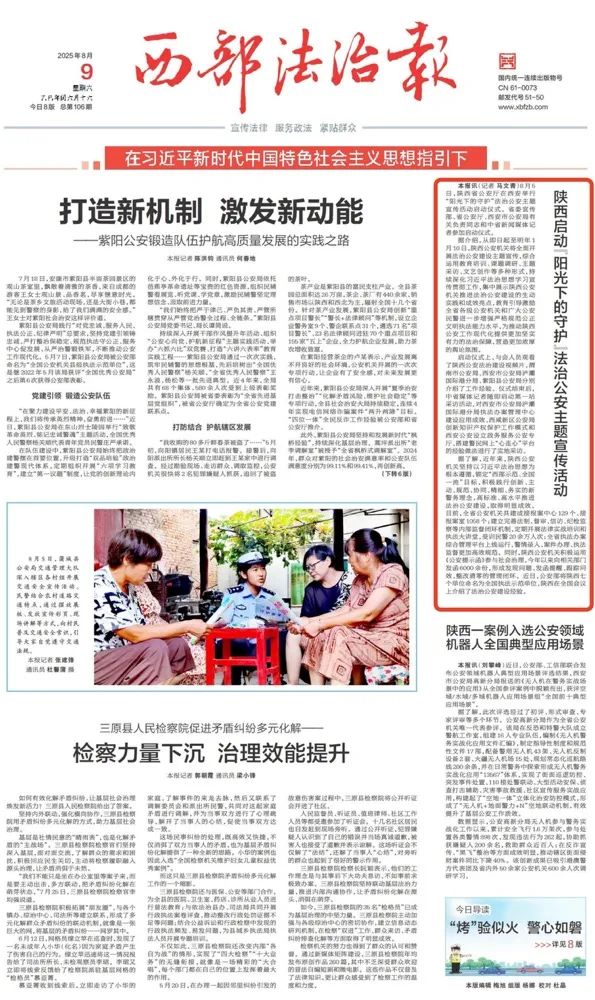 据了解,近年来,陕西公安机关坚持以习近平法治思想为根本遵循,锚定“西部示范、全国一流”目标,积极践行创新、主动、规范、协同、精细、务实的新警务理念,高标准、高水平推进法治公安建设,取得明显成效。目前,全省公安机关共建成接报案中心129个、接报案室1058个;建立完善法制、督审、信访、纪检监察等内部监督闭环机制,定期开展法律实战培训和执法大讲堂,受训民警20余万人次;全省执法办案综合管理平台上线运行,警情录入、案件办理、执法监督更加高效规范。同时,陕西公安机关积极运用《公安提示函》参与社会治理,今年以来向相关部门发函6000余份,形成发现问题、发函提醒、跟踪问效、整改清零的管理闭环。近日,公安部将陕西七个单位命名为全国执法示范单位,陕西在全国会议上介绍了法治公安建设经验。