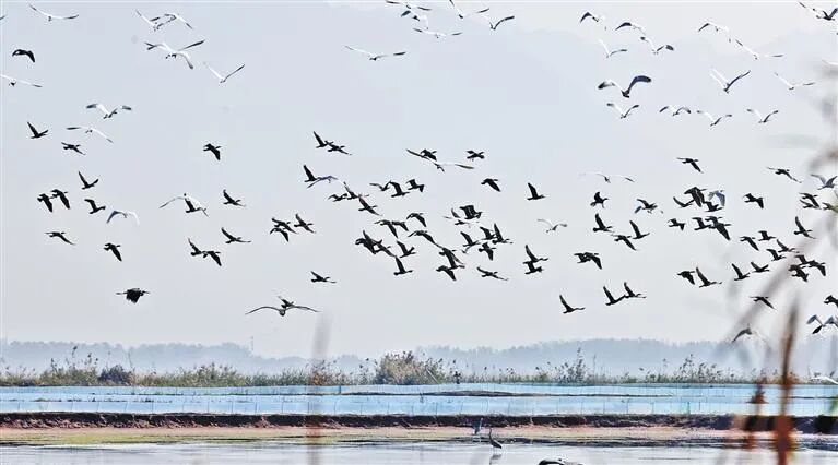 11月1日,陕西黄河湿地省级自然保护区大荔段迎来首批迁徙的候鸟,包括灰鹤、白琵鹭、反嘴鹬、大白鹭等。为确保候鸟迁徙越冬安全,大荔县林业局加大湿地及野生鸟类保护宣传力度,加密巡查巡护频次,为“远方来客”营造良好的栖息环境。 本报通讯员 李世居摄
