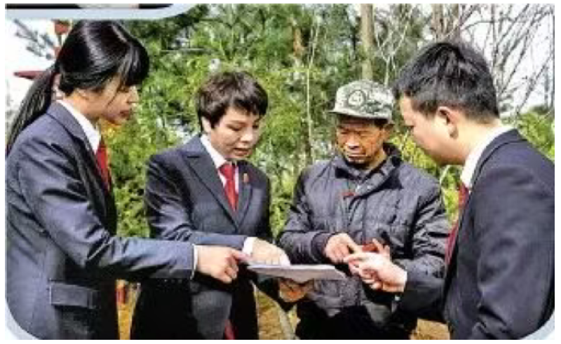 2024年12月,周梦琳(左二)组织修复生态后,当事人在笔录上签字。洛南县人民法院供图