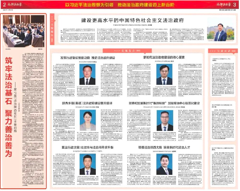 在交流发言中,6位专家学者分别围绕“发挥行政复议制度功能,推进法治政府建设”“建设新时代社会主义法治政府的核心要素”“关于加强陕西乡镇(街道)法治政府建设的思考”“新时代‘枫桥经验’视域下综治中心规范化建设的现实挑战与提升路径”“算法行政决策的法律规制”“植根法治陕西大局,培育新时代法治人才”等主题进行了交流发言。发言内容从行政复议实践到基层法治建设,从算法决策规制到律师人才队伍建设,充分阐释了法治政府建设在不同维度的实践重点、现实挑战及优化方向。