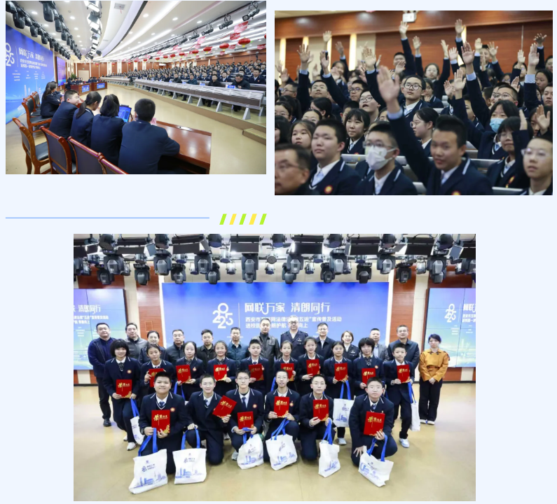 为深入学习贯彻习近平法治思想,全面落实“八五”普法规划要求,提升全民网络法治观念和网络素养,2025年9月至11月,西安市委网信办、西安市司法局联合主办“网联万家·清朗同行”2025年西安市互联网法律法规“五进”宣传普及活动,通过“政企校社媒”协同联动,创新普法模式,推动网络法治观念深入人心,为营造清朗网络空间注入法治动能。