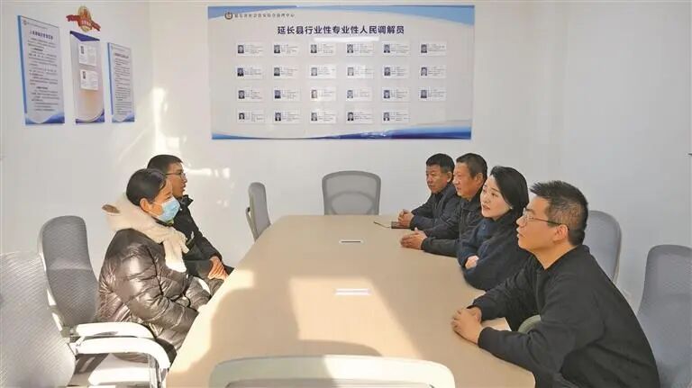 工作人员在延长县综治中心调解室为来访群众调解矛盾。 受访单位供图