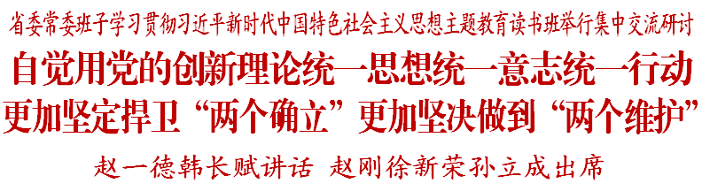 4月21日,省委常委班子学习贯彻习近平新时代中国特色社会主义思想主题教育读书班在省委党校(陕西行政学院)举行集中交流研讨。省委书记、省委主题教育领导小组组长赵一德主持并讲话,中央第三指导组组长韩长赋讲话。省长赵刚,省政协主席徐新荣,中央第三指导组副组长孙立成,现职省级领导同志出席。省委常委会组成人员作交流发言。