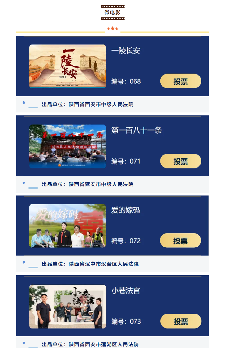 2025年10月28日第十二届“金法槌奖”微电影微视频征集展播活动投票通道正式开启!