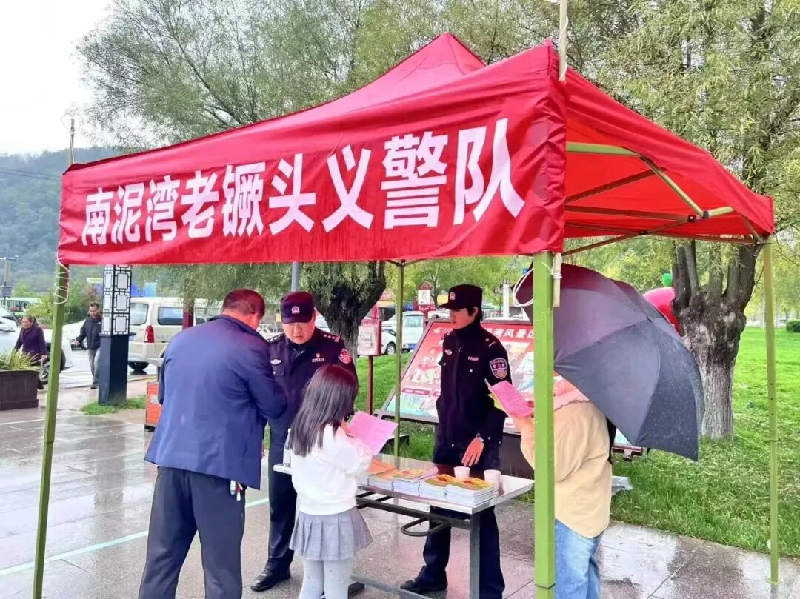 在延安,南泥湾派出所“老镢头义警队”的深蓝身影在雨幕中格外动人。队员吴涛嗓音沙哑,却在湿滑的田埂上一次次响亮地为游客指引方向,他小心搀扶着步履蹒跚的老人,抱起啼哭不止的孩童。杨正则守在临时搭建的避雨点,将一杯杯热水递到冷得搓手的游客手中。他们细心地竖起警示牌,将一件件一次性雨衣送到未带雨具的游客手里。