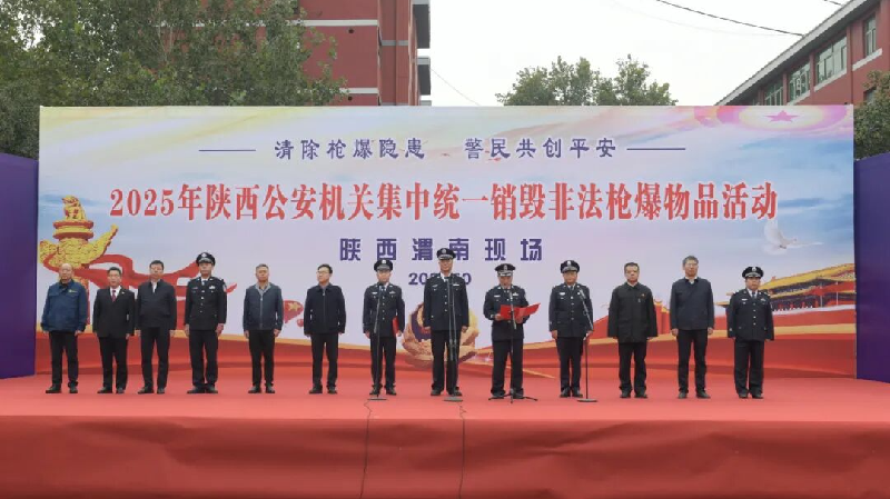 10月22日上午,陕西省公安厅以“消除枪爆隐患 警民共创平安”为主题,在韩城、华阴组织开展非法枪爆物品集中统一销毁活动,现场销毁收缴枪支632支,零部件568件,子弹4.2万余发,管制刀具709件,仿真枪104支。